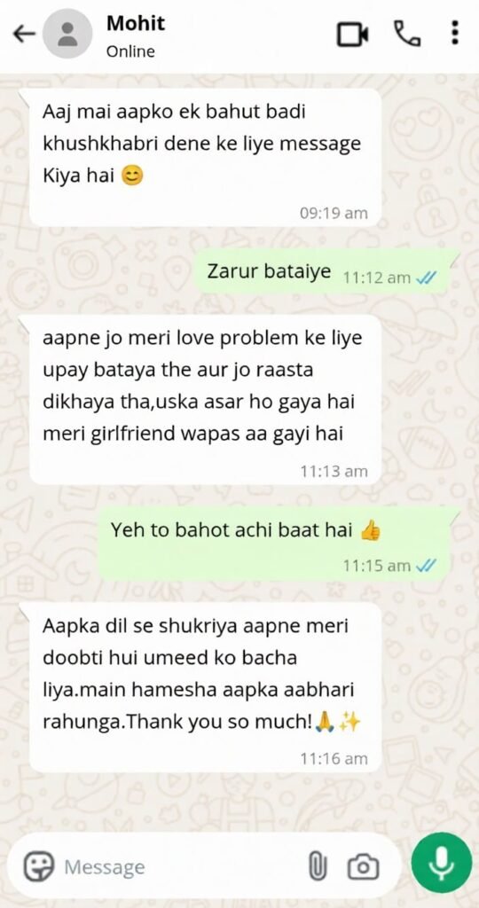 He specializes in solving complex love and relationship problems, helping individuals reunite with their loved ones and build strong, meaningful relationships. His dedication, honesty, and spiritual knowledge have made him one of the most trusted love astrologers in India.